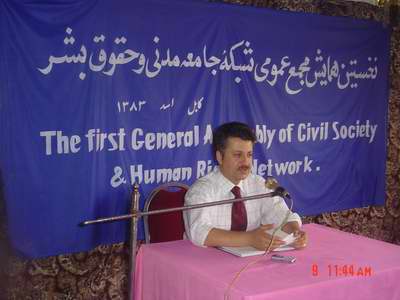 آقای عزیز رفیعی مسوول اجتماع جامعه مدنی افغانستان سخنران بعدی این همایش بود، وی گفت تعدد نهاد های مرکزی برا ی جامعه مدنی بیانگر آنست که ما منسجمتر به استقامت جامعه قانون خواهیم رفت آقای رفیعی به اصل برنامه های مشترک و بخاطر استحکام جامعه مدنی تاکید نمودو جامعه مدنی را منبع مهمی برای جامعه دمکراتیک خواند. درین محفل داکتر نیازی به نماینده گی از مجمع فرهنگ و جامعه مدنی صحبت کرده و ظهور شبکه جامعه مدنی و حقوق بشر افغانستان را به دست اندر کاران و اعضای آن خیر مقدم و مبارک باد گفت. آقای نیازی بر حساسیت شرایط مو جود مکث نمود و بر نقش تعین کننده جامعه مدنی در امروز و فردای افغانستان صحه گذاشته افزود: حقوق بشر به عنوان ارزش مند ترین پدیده باید حترام شود و مدافعین سرشاری در جامعه داشته باشد، خوشحالیم که امروز یکی ازین مدافعین قد برافراشت. آقای آذریون هماهنگ کننده شبکه جامعه مدنی و حقوق بشر به تفصیلات لازم در مورد برنامه شبکه پرداخت. وی درباره نقش شبکه در هماهنگی با اعضای آن پرداخت و از شرکت کنند گان در کار شبکه سپاسگزاری نمود. در ختم محفل پروفیسر کبیررنجبر اساس نامه شبکه را در محظر مباحثات قرارداد.بحثی گرمی آغاز گردید در ین مباحثات خانم ها؛ سیرن ریس مرکز تعلیاتی حقوق بشر، الاهه سروش، ثریا پرلیکا ریس اتحادیه سراسری زنان، ریدا عظیمی ژونالیست و نطاق رادیووتلوزیون، عزیزه احمدیار مسول شبکه زنان افغان وآقایون عبدرحمان هوتک  ریس مرکز حقوق بشر و محیط زیست، مددزی ریس حقوق بشر وزارت امور داخله، لعل گل ریس کمسیون غیر دولتی حقوق بشر، امینی ریس مرکز تعاون افغانستان، پر تو نادری ریس کلپ قلم ، گلنور بهمن نوسینده و شاعرافغان، استاد مسعود استاد دانشگاه کابل، نظیمی ریس موسسه املبلاد، مایار هم آهنگ کننده موسسه اکبر، بصیر مسوول مرکز عدالت و دموکراسی،انجنیر راشد رستمی ریس موسسه همکاری و انکشاف و ایمل ریس مرکز تعلیمی بخارا وحید وارسته مسول مرکز حمایت مطبوعات،  بر شیوه های کاری شبکه به سوالات و مشاجرات پرداختند که آقایون رهنورد زریاب، کبیر رنجبر و ملک ستیز به جوابات و معلومات بیشتر پرداختند. .   مجمع عمومی شبکه جامعه منی و حقوق بشر افغانستان اعضای هیات اجراییه خویش را که متشکل از سیزده تن است انتخاب نمود و شبکه رسما به کار خویش آغاز نمود.