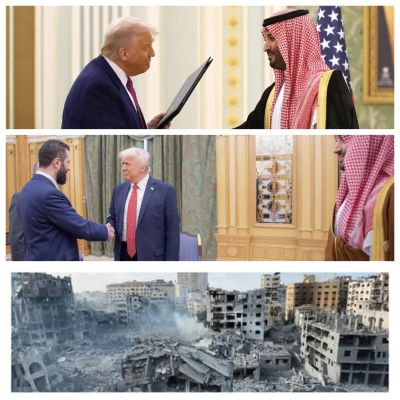 جالب این است که آقای ترامپ برای حفظ منافع حیاتی و حضور پرقدرت امریکا در خاورمیانه ، ماهیت اصلی دیموکراسی طلبی ، آزادی خواهی و حقوق بشر امریکایی - غربی را هم درحین این سفربه نمایش گذاشت . او با دستان خود پرده ی نمایش تیاتری  سوریه را کنار زد و ابوجولانی ( احمدشرع ) را که از زمره ی تروریستان خطرناک داعش ( حالا تحریرشام ) و خطرناک ترین شخص تحت تعقیب امریکا بود ، درآغوش گرفت . تحریم ها علیه سوریه و تحریرشام را ازمیان برداشت و وعده داد تا سوریه را در زیر سایه ی او ولی درهمکاری با الیگارش های حکومتی امریکا ، آباد و مرفه سازند .