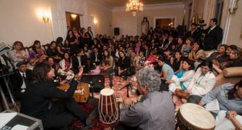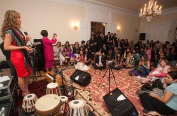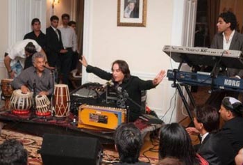 سید طیب جواد سفیرکبیر با هنرمند محفل خانم مژده درعمارت رسمی سفارت محفل بزم رقص